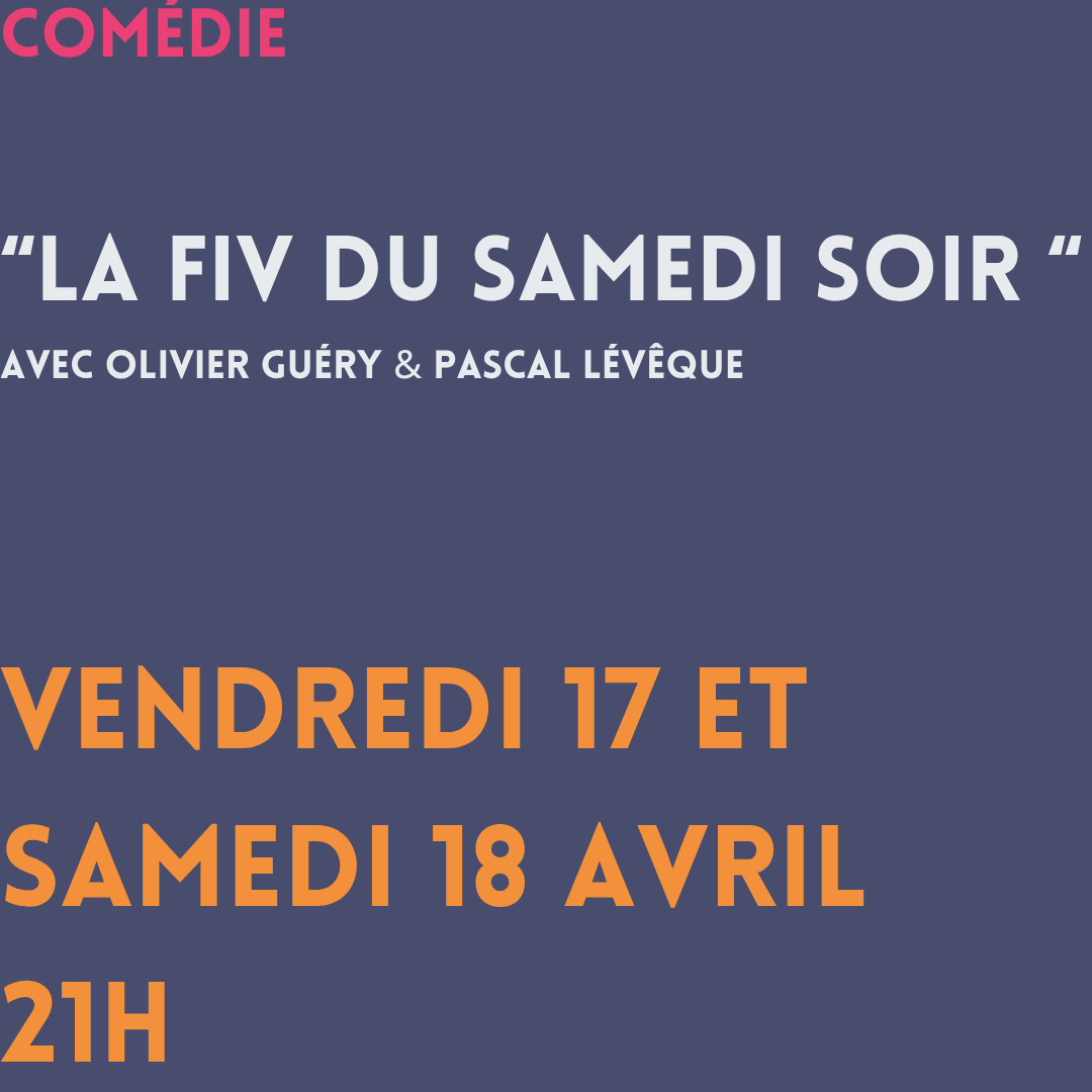 "La FIV du samedi soir" de Olivier Guéry, Pascal Lévêque & François RousseauLa parentalité est parfois semée d'embuches. Embarquez dans une exploration hilarante de la procréation avec "La F.I.V. du samedi soir". Une comédie déjantée, où la science rejoint l'humour, pour briser les tabous !